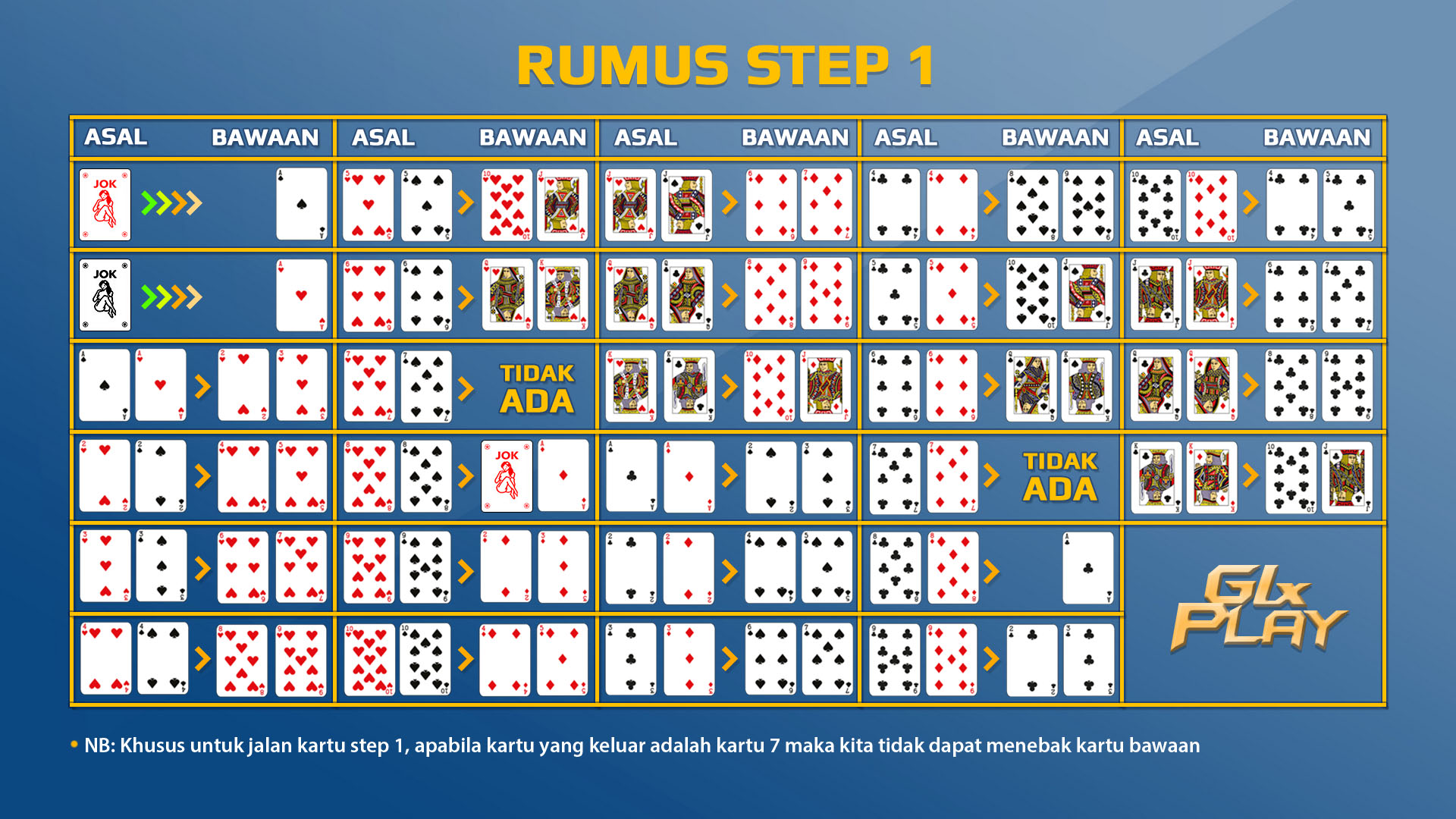 NB: Khusus untuk jalan kartu step 1, apabila kartu yang keluar adalah kartu 7 maka kita tidak dapat menebak kartu bawaan
